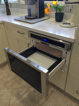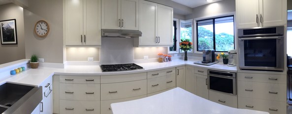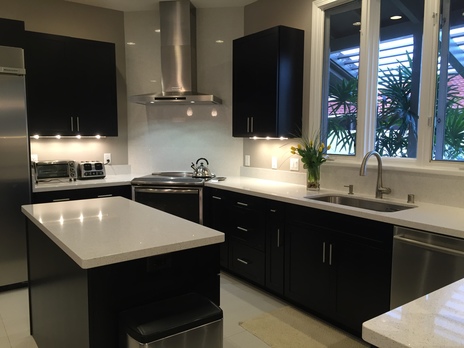 Walking into this Kitchen is definitely a breath of fresh air! Very Cheery & Bright!! Homeowners were happy that they were able to get everything on their "need & want list." Especially the Roll-out Trays (storage), and Built-In Microwave Drawer... Mahalo to our clients for selecting our team to build their Dream!